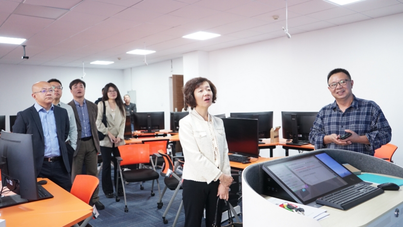 李青一行首先参观了学院的虚拟仿真实验室。实验室运用先进的信息技术手段,为学生打造了一个逼真的突发公共卫生事件场景,显著提高了教学效果。李青对实验室的创新性和实用性给予了高度评价,并与郭桂平老师进行交流,详细了解了实验室在课程设计和学生实践能力培养方面的具体做法。