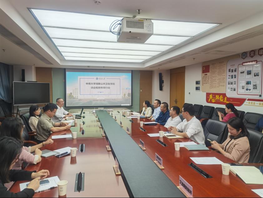 为深入学习贯彻党的二十大和二十届三中全会精神,落实党中央、国务院关于高校毕业生就业工作的决策部署,推动学院就业工作提质增效,搭建用人单位和学生之间的交流平台,2024年11月14日,湘雅公共卫生学院党委书记雷先阳带队赴武汉市疾病预防控制中心开展“访企拓岗”走访调研。学院党委委员尹逊强、流行病与卫生统计学系主任吴心音、劳动卫生与环境卫生学系副主任张宪陪同走访。武汉市疾病预防控制中心党委书记、主任王家刚,副主任何振宇,中心综合室、科教部、传防所、环境所、艾防所、血防所等部门主要负责人与会接待参加交流。